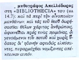 Οι αρχαίοι μυθογράφοι Νόννος, Υγινος και Απολλόδωρος γράφουν ότι πριν από χιλιάδες χρόνια, ο άρχοντας της περιοχής, ο Ικάριος, και η όμορφη κόρη του Ηριγόνη καλοδέχτηκαν έναν νεαρό ξένο. Συγκινημένος από την θερμή τους φιλοξενία, ο ξένος τους φανέρωσε ότι ήταν ο θεός Διόνυσος, υιός του Δία και της Σέμελης. Τους χάρισε, για να τους ευχαριστήσει, το αμπέλι και δίδαξε στον Ικάριο την τέχνη της οινοποιίας, όπως μας λέει ο Απολλόδωρος( BIBLIOTHECIA iii, 14.7 ).